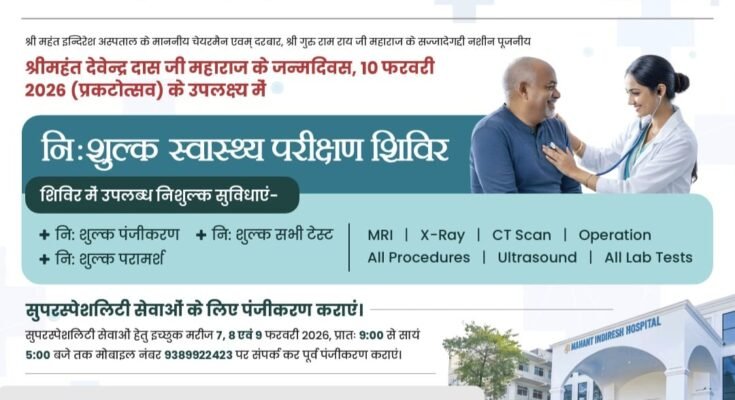 बिग ब्रेकिंग : श्री महंत इंद्रेश अस्पताल में विशाल निःशुल्क स्वास्थ्य शिविर, MRI-CT समेत सभी जांचें और दवाइयाँ मुफ्त