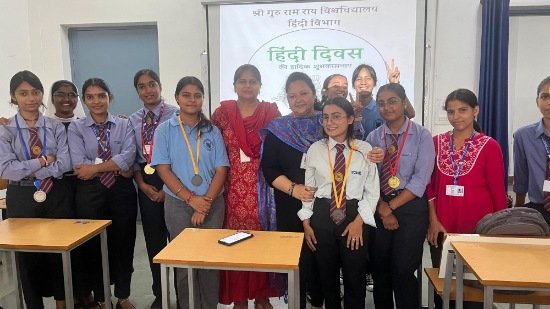 देहरादून। श्री गुरु राम राय विश्वविद्यालय के मानविकी एवं सामाजिक विज्ञान संकाय के हिंदी विभाग ने हिंदी दिवस के अवसर पर विविध साहित्यिक और सांस्कृतिक कार्यक्रमों का आयोजन किया। कार्यक्रम में छात्रों ने उत्साहपूर्वक भाग लेते हुए अपनी प्रतिभा का प्रदर्शन किया।