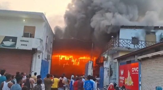 भूरारानी इलाके के पाइप गोदाम में भीषण आग, लाखों का नुकसान