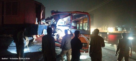 हादसे में बस चालक समेत आठ लोग गंभीर रूप से घायल हो गए। बताया जा रहा है कि चालक के दोनों पैर कट गए, जबकि अन्य यात्रियों की हालत भी नाजुक बनी हुई है। हादसे के बाद बस में चीख-पुकार और अफरा-तफरी मच गई।