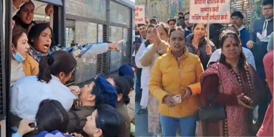 नर्सिंग भर्ती को लेकर सड़क पर उतरे अभ्यर्थी, महिला पुलिसकर्मी ने छात्रा को मारा थप्पड़