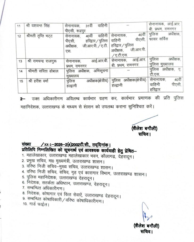 → एसपी (क्षेत्रीय) हल्द्वानी से हटाए गए