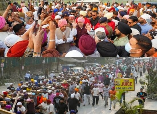 94 फीट ऊंचे नए ध्वजदण्ड को कंधों पर उठाकर श्री दरबार साहिब पहुंची संगतें, जयकारों से गूंजा दून