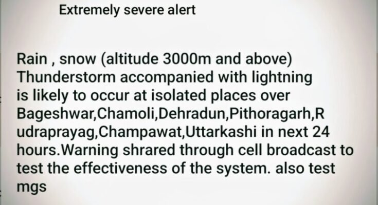 यह संदेश सरकार द्वारा शुरू किए गए Cell Broadcast सिस्टम के माध्यम से भेजा गया है, जिसका उद्देश्य आपदा के समय लोगों तक तुरंत सूचना पहुंचाना है।