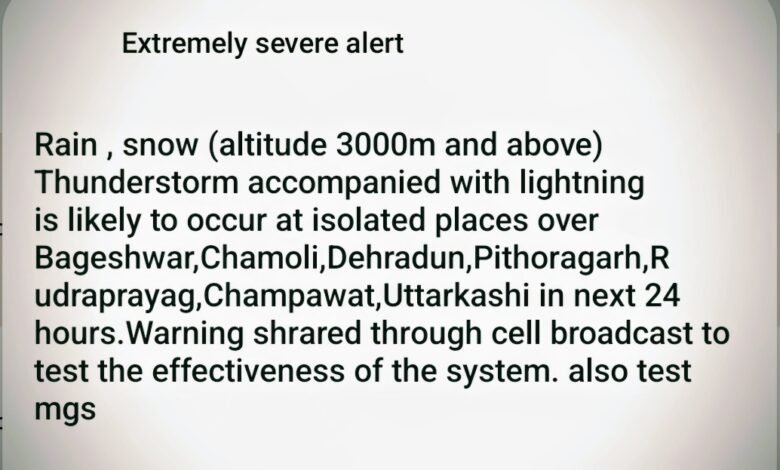 देहरादून। उत्तराखंड में मौसम को लेकर बड़ा अलर्ट जारी किया गया है। कई लोगों के मोबाइल पर अचानक तेज सायरन के साथ “Extremely Severe Alert” संदेश पहुंचा, जिससे हड़कंप मच गया।