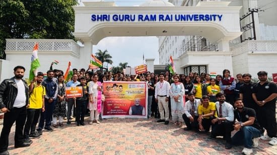 देहरादून। शहीदी दिवस के अवसर पर मेरा युवा भारत देहरादून के तत्वावधान में श्री गुरु राम राय विश्वविद्यालय में भव्य पदयात्रा का आयोजन किया गया। कार्यक्रम में बड़ी संख्या में छात्र-छात्राओं ने भाग लेकर देशभक्ति और सामाजिक जिम्मेदारी का संदेश दिया।