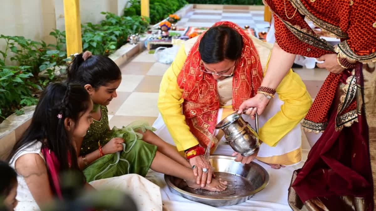 देहरादून में मुख्यमंत्री पुष्कर सिंह धामी ने मुख्यमंत्री आवास पर विधि-विधान से कन्या पूजन किया। इस दौरान उन्होंने कन्याओं के पैर पखारे, उन्हें भोजन कराया और आशीर्वाद लिया।