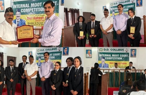 DD कॉलेज में अंतरराष्ट्रीय मूट कोर्ट प्रतियोगिता संपन्न, नव्या–मधुर–चरनजीत बने विजेता